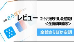 レビュー全館さらぽか空調レビュー<全館床暖房>2ヶ月使用した感想 『全館さらぽか空調』について、中でも一条工務店といえば、『全館床暖房』が特徴のひとつです。今回は実際に体感したレビューをしたいと思います。 2020.12.15レビュー一条工務店全館さらぽか空調