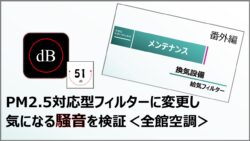 レビューPM2.5対応型フィルターに変更し気になる騒音を検証<全館空調> PM2.5対応型フィルターは標準のフィルターと比べて、性能が良くなる半面、目が細かくなることで説明書には『換気システムのファン回転数が上がるため、騒音が大きくなる』と書かれてあり、装置の騒音が大きくなる懸念がありました。実際に、騒音を測定して検証します。 2021.02.23レビュー一条工務店全館さらぽか空調