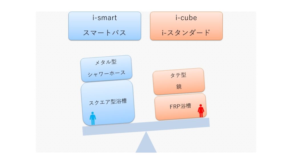 夫婦二人でスマートバスとi-スタンダードで良いポイントを挙げて、天秤にかけると以下のようになりました↓