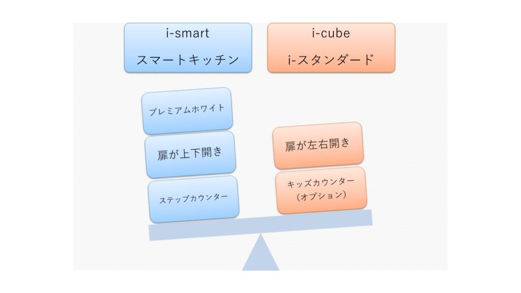 i-smart か i-cube を選択する際には、キッチンへのこだわりが重要なポイントと思います。