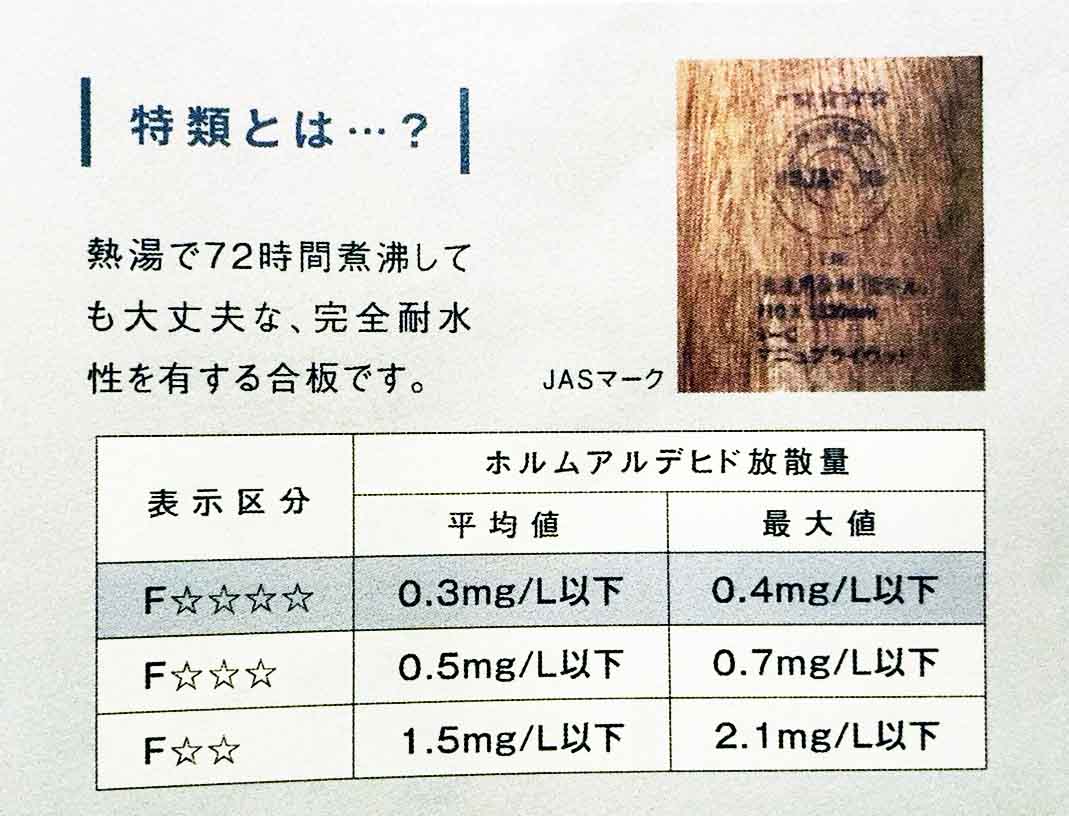 また、合板も常時湿潤状態にて使用しても問題の無い「特類」の合板を使ってますので、建築中に雨が降り続いても問題ありません。