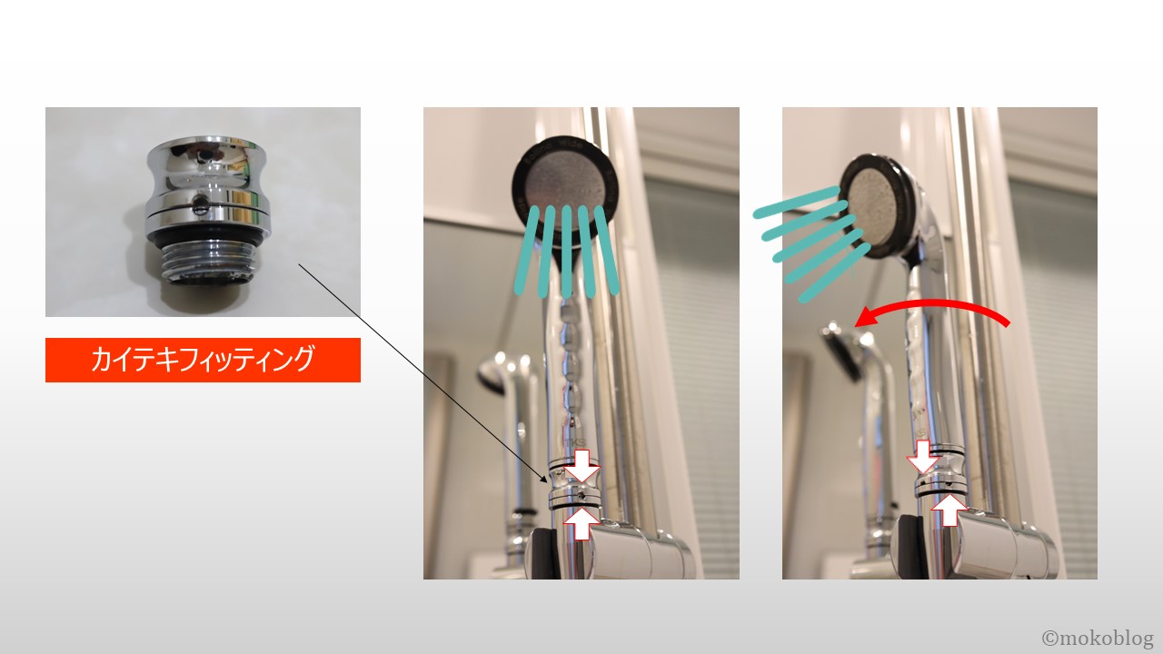 シャワーヘッドに比べると地味なんですが、この『カイテキフィッティング』おすすめです。