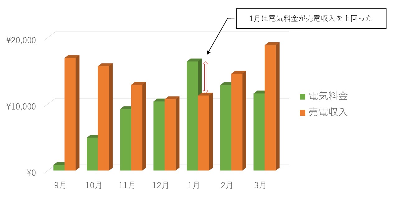 年中、売電収入が電気代よりも多いとは限らないことがわかりました。