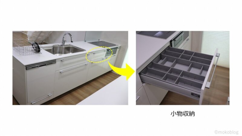 気になった箇所は、調理側の小物を収納する引き出しです。