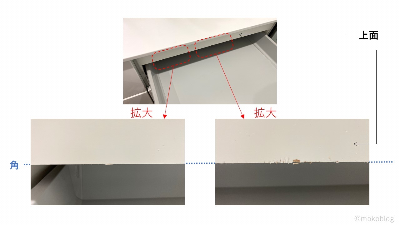 引き出しを開けた上面部分になにやらキズがあることがわかりました。