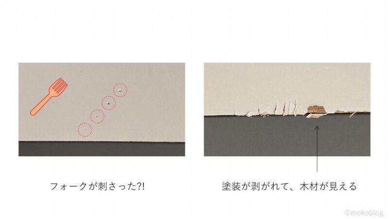 ただ、フォークやハサミが挟まっても塗装を守れるほど強度があるか心配です。