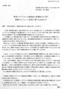 新型コロナウィルスの影響は、我が家の建築スケジュールにまで広がってきました。